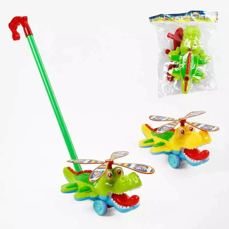 Каталка 367 (60/2) "Крокодил", 2 кольори, дзвіночок, з ручкою, в пакеті