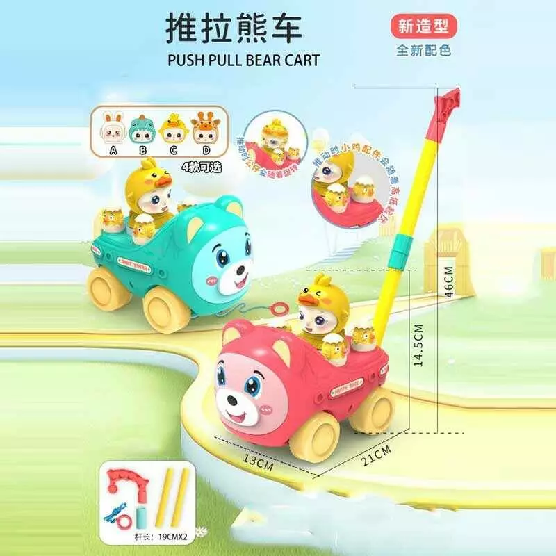 Каталка 8517 C (48/2) 2 кольори, 13 см х 21 см х 46 см, дзвіночок, обертається фігурка, в пакеті