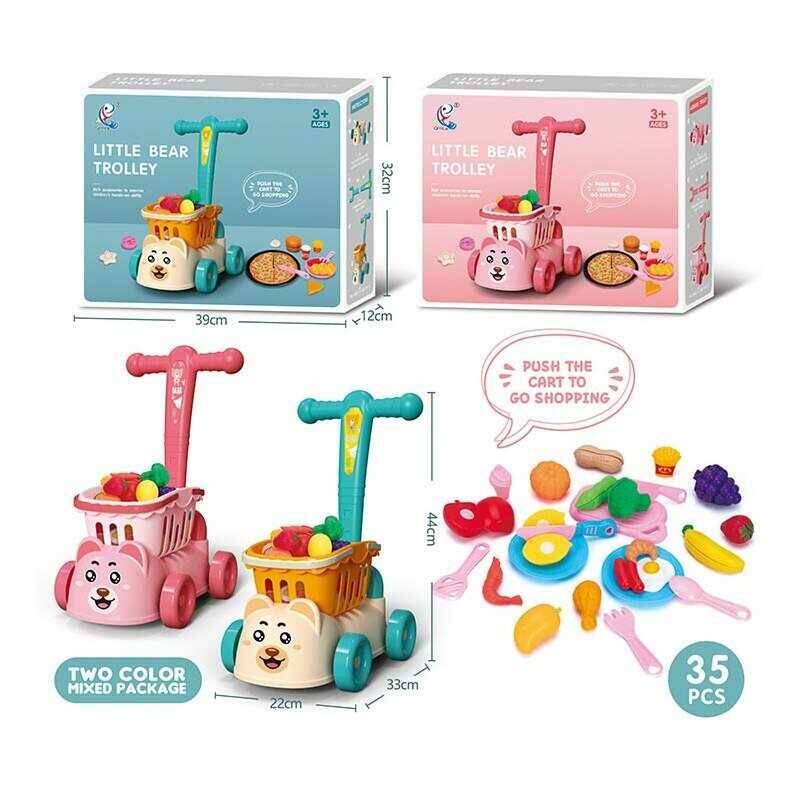 Каталка 998-4 (18) 2 види, 30 елементів, кошик з продуктами, в коробці