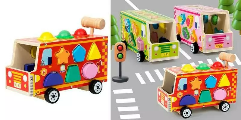 Каталка C 75629 (48) 3 кольори, дерев’яна, сортер, в коробці, ВИДАЄТЬСЯ ТІЛЬКИ МІКС ВИДІВ