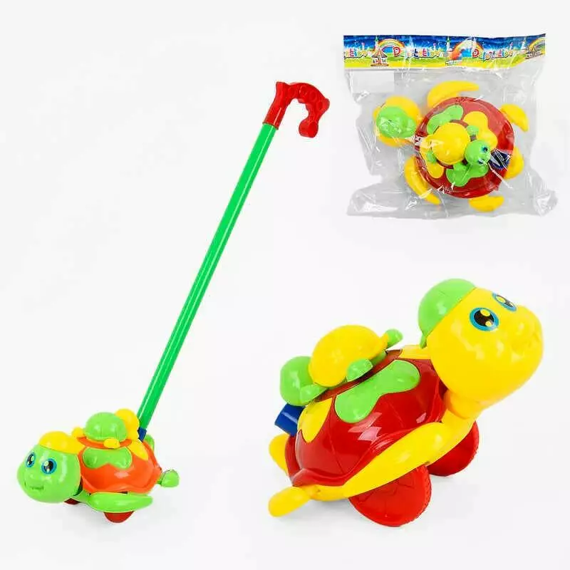 Каталка Черепашка 369 (72/2) 2 кольори, з дзвіночком, з ручкою, в пакеті
