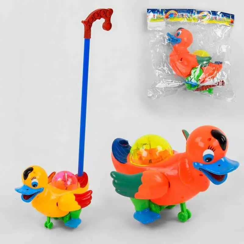 Каталка Каченя 316 (72/2) 2 види, світло, дзвіночок, з ручкою, в пакеті