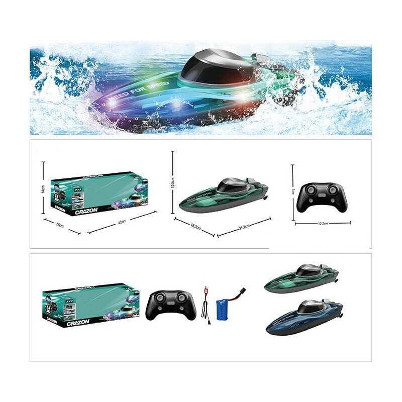Катер на радіокеруванні 333 KT 2511 (24) 2 кольори, акумулятор 7.4 V, USB-кабель, пульт 2.4 GHZ, водонепроникний, працює на воді, світло, в корбці