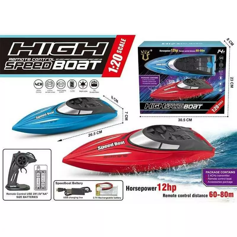 Катер на радіокеруванні KP 666-52 (36) 2 кольори, довжина 23 см, масштаб 1:20, акумулятор 3.7V, пульт керування 2.4 GHz, в коробці