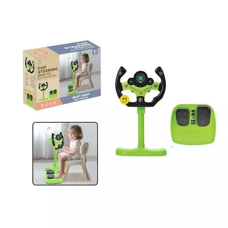 Кермо 2192 E-73 Штрих = 92484 (18) колір ЗЕЛЕНИЙ, підставка 34 см, звуки, озвуч. англійською, мелодії, світло, педалі гальма і газу, в коробці