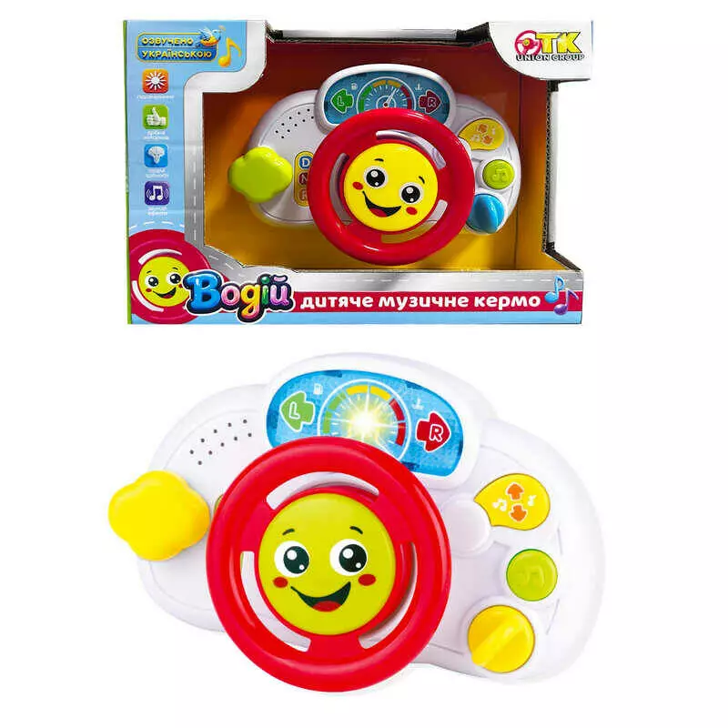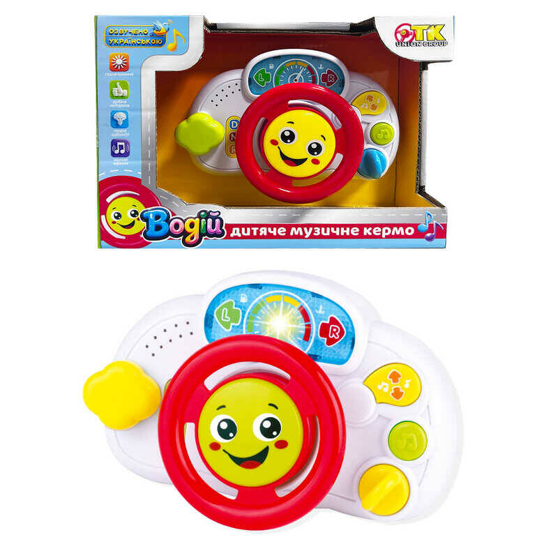 Кермо музичне 91934 (96/2) "TK Group", ОЗВУЧУВАННЯ УКРАЇНСЬКОЮ МОВОЮ, 3 казки, 3 пісні, віршик, підсвічування, тріскачка, в коробці