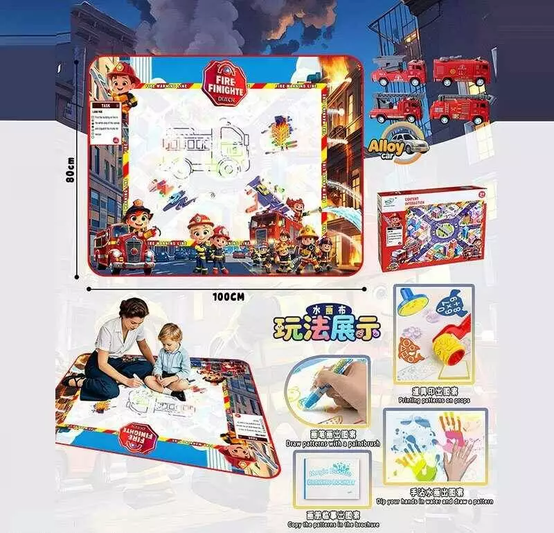 Килимок для малювання водою YYD 041 (64) 100х80 см, 3 маркери, водяні печатки, трафарети, 1 металопластикова машинка, в коробці