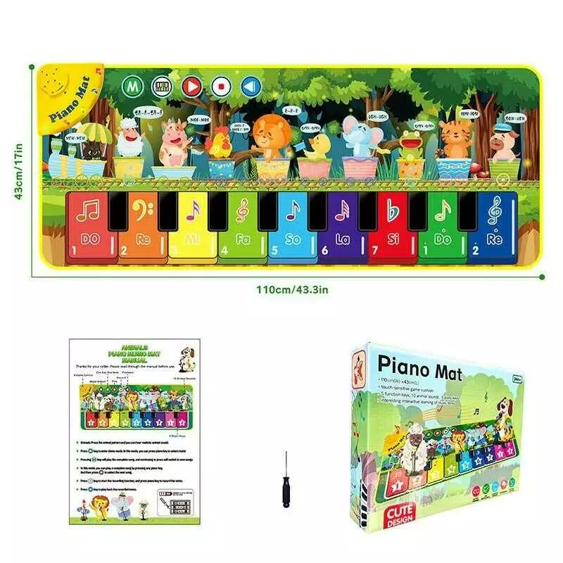 Килимок музичний 638-19 (36) 110 х 3 х 43 см, на батарейках, музичні інструменти, ноти, звуки тварин, запис, режим пам`яті, музика, в коробці