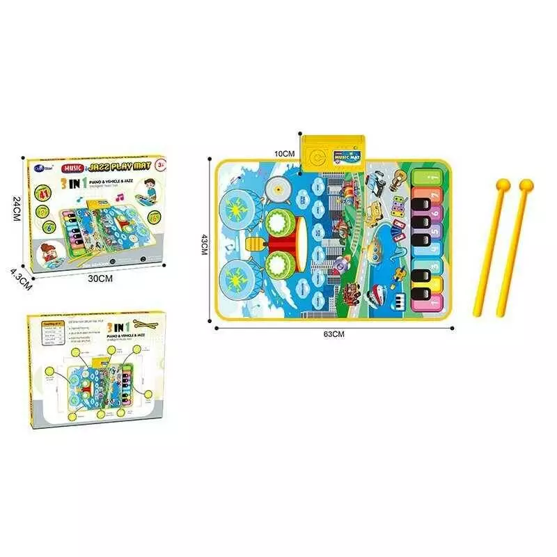 Килимок музичний 757-80 (60/2) звук, клавіші, музичні інструменти, транспорт, барабани, барабанні палички, зміна гучності, запис, музика, в коробці