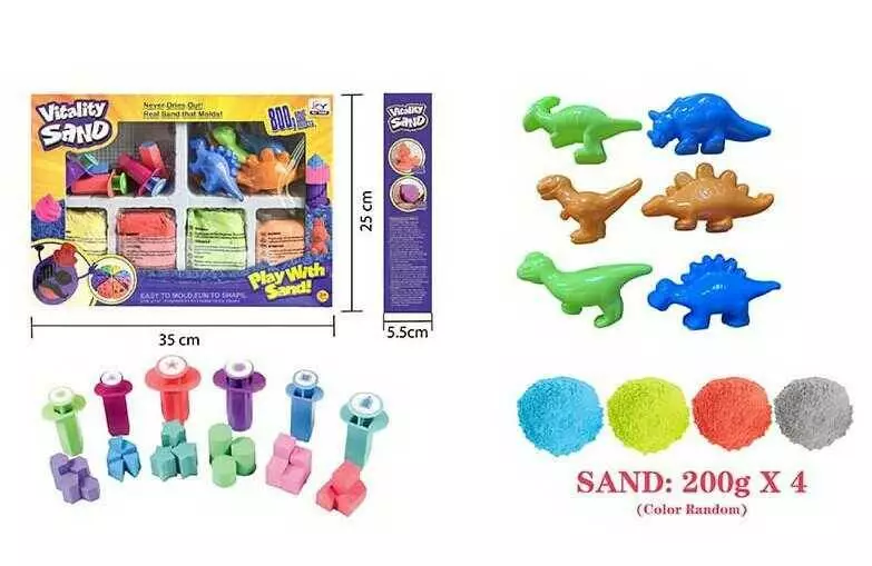 Кінетичний пісок 1902 B (24/2), 800 г, 6 форм, 4 кольори, 7 екструдерів, в коробці