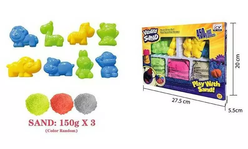 Кінетичний пісок 1905 D/E (36/2) 450 г, 3 кольори, 8 форм, в коробці