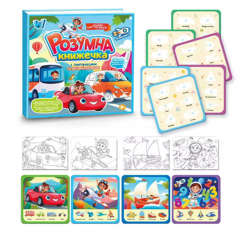 Логічна книжка 55049 (40) "WToys", 10 сторінок, транспорт, картки на липучках, сортер, водна розмальовка, водний маркер, в плівці