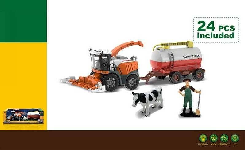 Комбайн 550-38 K (24/2) підсвічування, звуки транспорту, інерція, гумові колеса,фігурка людини й корови, цистерна від’єднується, в коробці