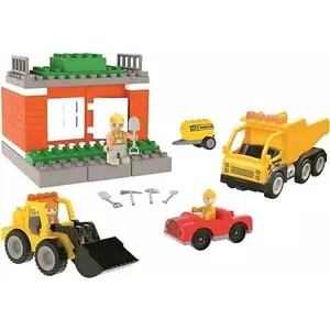 Конструктор 03-614 Pilsan (6) "Будівельний майданчик", вантажівка, бульдозер, фігурки людей, рухомі деталі, огорожі, в коробці