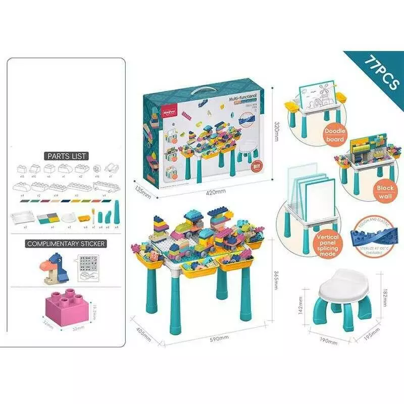 Столик з конструктором 10351 A-Q 03 B (12) 77 деталей, р: 59х40.5х36.5 см, еластичні деталі, дошка, маркер “пиши-витирай”, в коробці