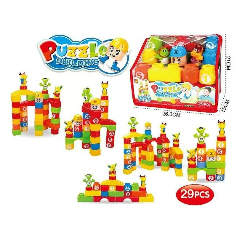 Конструктор 3025 (36/2) 29 елементів, кумедні фігурки, блоки з цифрами, в сумці