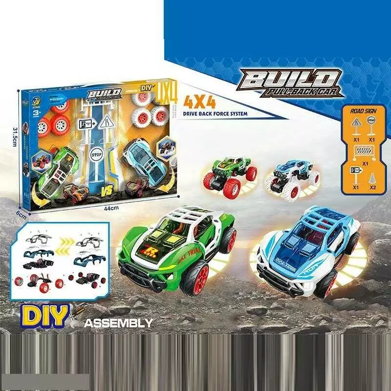 Машинки-конструктори 65274 (24/2) 2 машинки, інерція, 2 набори коліс, гумові шини, інструменти, в коробці