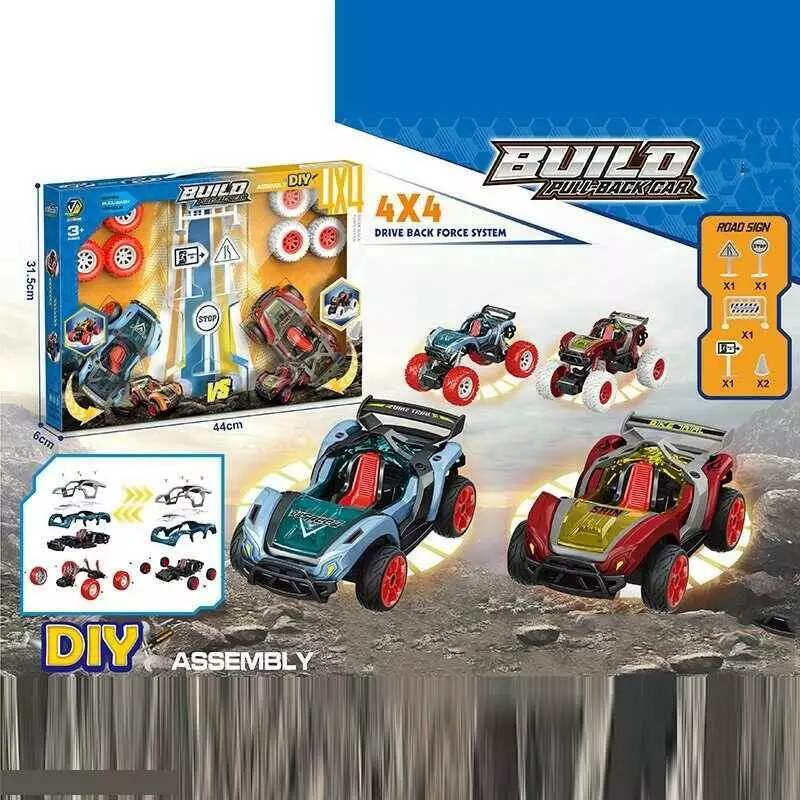 Машинки-конструктори 65278 (24/2) 2 машинки, інерція, 2 набори коліс, гумові шини, інструменти, в коробці