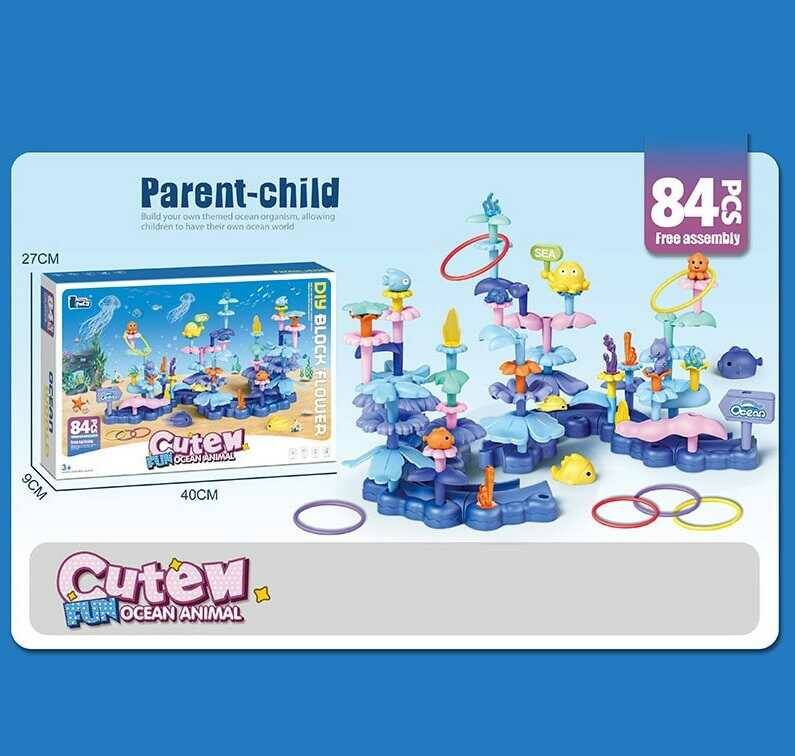Конструктор 689-2 (24) "Морський світ", 84 деталі, кільцекид, фігурки тваринок, звивиста основа, в коробці
