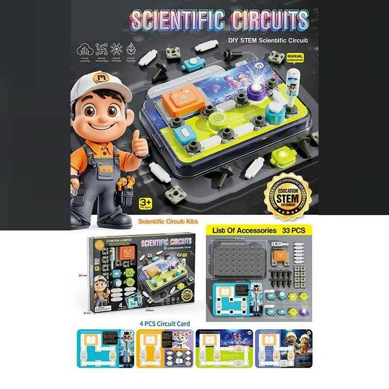 Електронний конструктор 77-53 K (24) 33 елементів, підсвічування, мелодія, 2 види перемикачів, 4 картки із прикладами, основа для збірки, в коробці