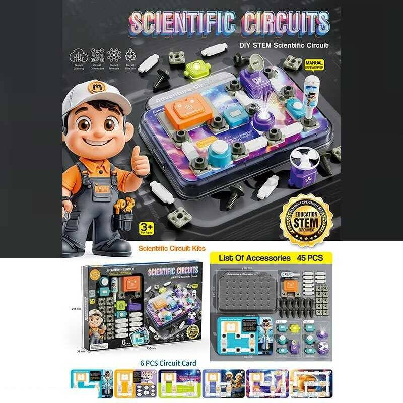 Електронний конструктор 77-54 K (24) 45 елементів, підсвічування, радар, 3 види перемикачів, 6 карток із прикладами, основа для збірки, в коробці