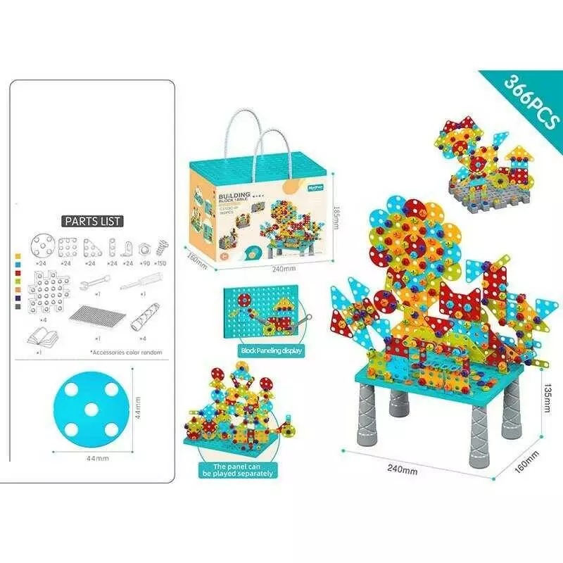 Столик з конструктором C 2723 C-12 (24) 366 деталей, розмір столика: 24х16х13.5 см, в коробці
