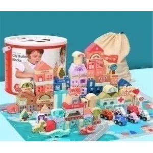 Конструктор дерев’яний C 65441 (12) мішечок для зберігання, пазли, у відрі