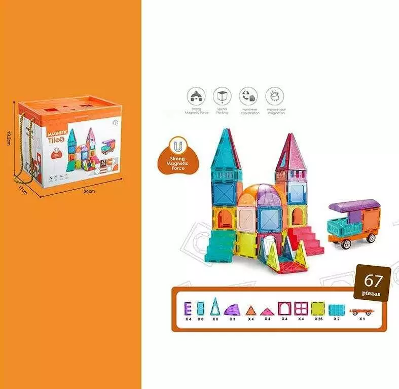 Магнітний конструктор CH 1132 (8) “Будинок”, машинка, 67 деталей, в коробці