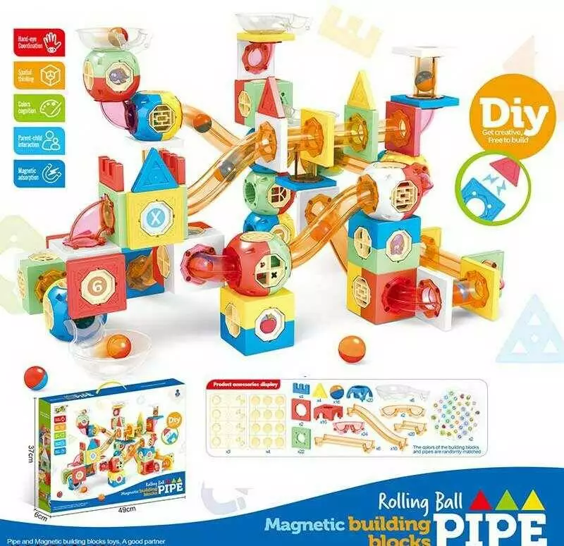 Магнітний конструктор F 0233 (18/2) 238 елементів, кульки, тунелі, наліпки, в коробці