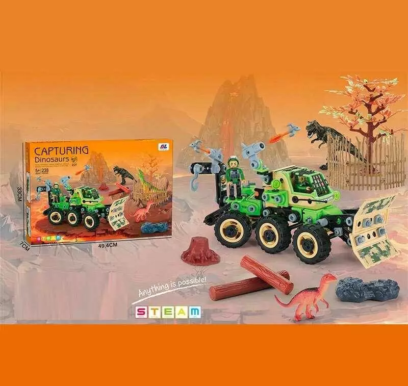 Конструктор J 6615 (18/2) 238 деталей, інструменти, ігрові фігурки, гумові шини, в коробці