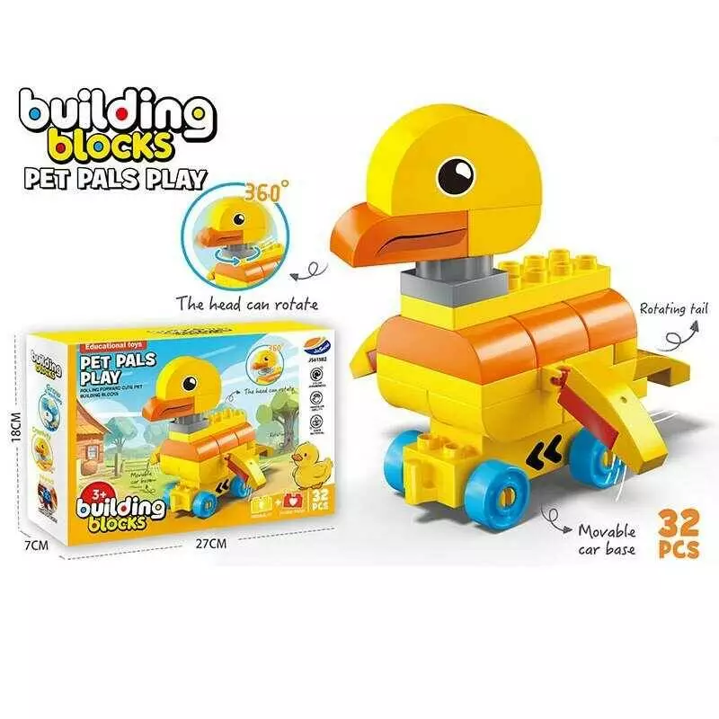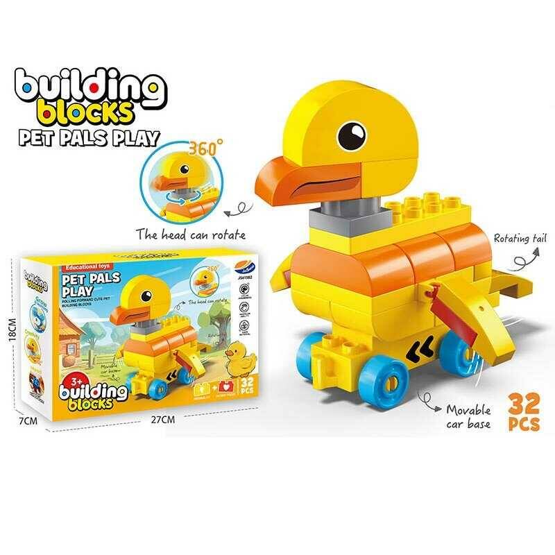 Конструктор JS 613 B2 (72/2) “Каченя”, 32 елементи, голова обертається, їздить, основа на коліщатках, рухомий хвостик, в коробці