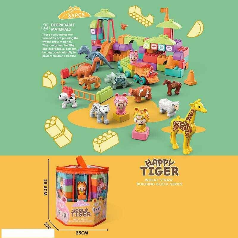 Конструктор JX 6721 (24/2) "Парк развлечений", 45 элементов, 3 фигурки малышей, животные, паровозик, качели, в пвх сумке