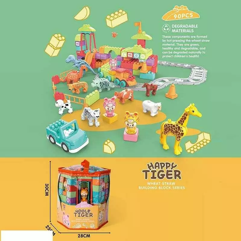 Конструктор JX 6723 (18/2) "Парк развлечений", 67 элементов, 3 фигурки малышей, качели, паровозик, животные, в пвх сумке