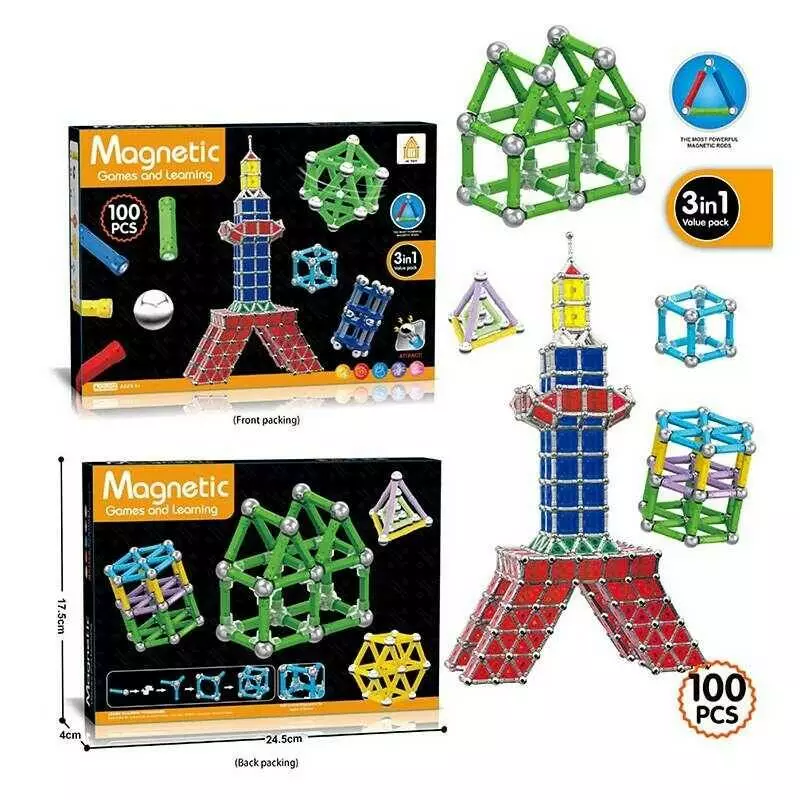 Магнітний конструктор AQ 2234 (72/2) 100 деталей, 7 типів елементів, в коробці
