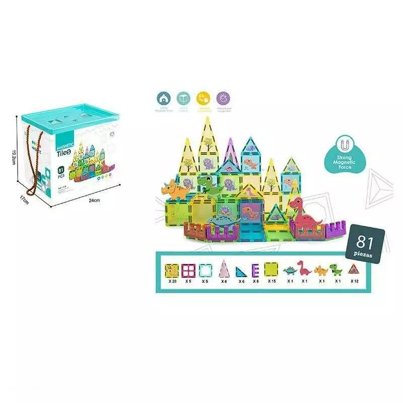 Магнітний конструктор CH 1119 (12) 81 деталь, фігурки динозаврів, в коробці