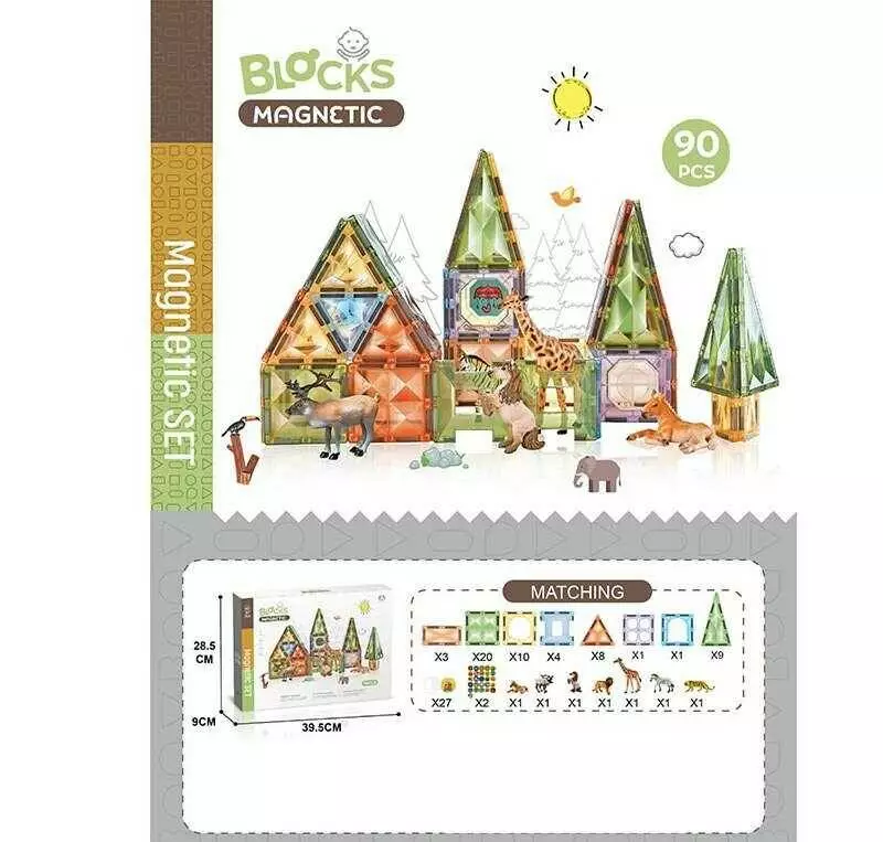 Магнітний конструктор CH 1199 (8) “Зоопарк”, 90 деталей, в коробці