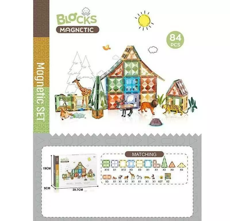 Магнітний конструктор CH 1211 (12) “Зоопарк”, 84 деталі, фігурки тварин, в коробці