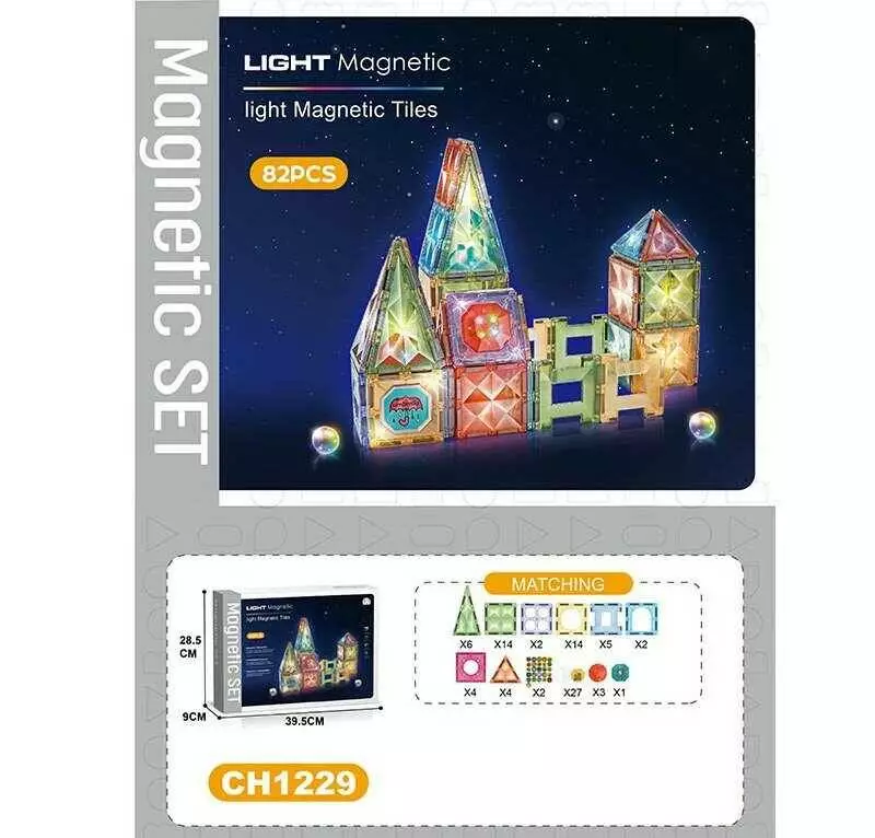 Магнітний конструктор CH 1229 (12) 82 деталі, підсвічування, наліпки, в коробці