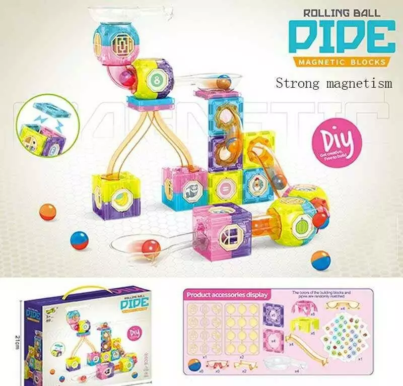 Магнітний конструктор G 0098-1 (36/2) 89 елементів, кульки, тунелі, наліпки, в коробці