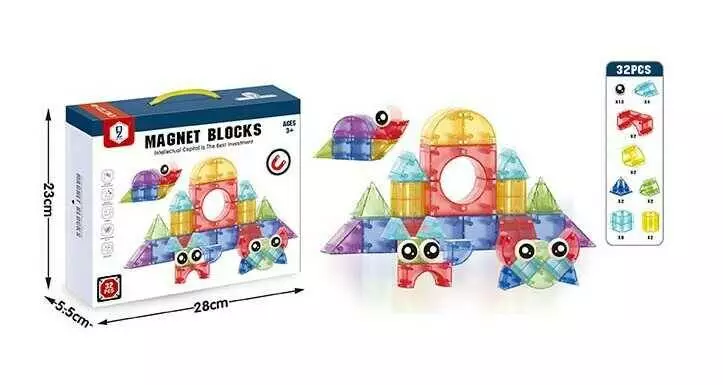 Магнітний конструктор HD 141 A (60/2) 32 деталі, магнітні очі, різні фігури, в коробці