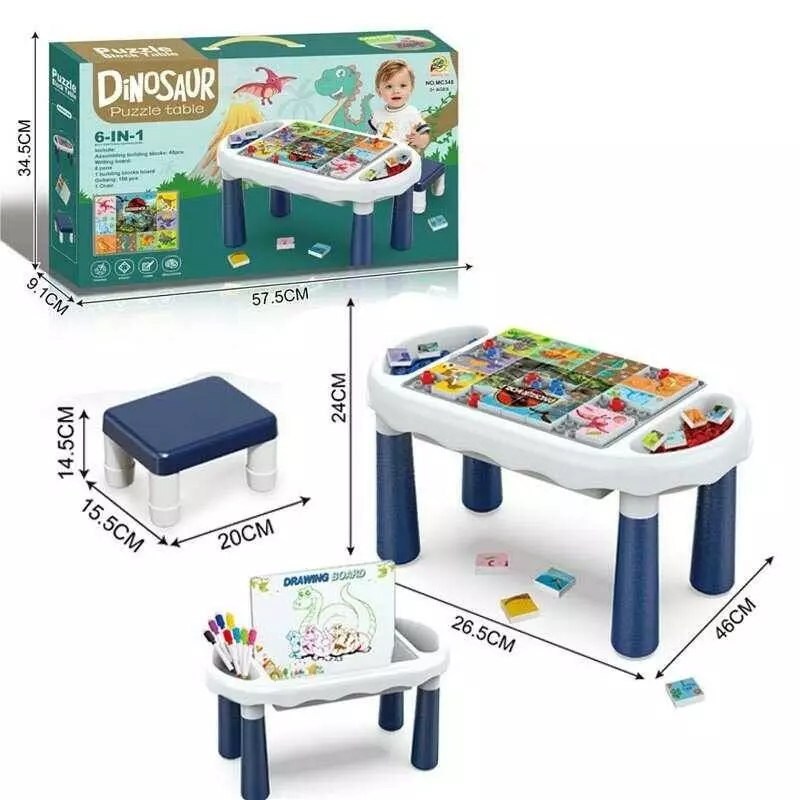 Ігровий столик MC 348 (18) розмір 4626.524 см, мозаїка, пазли з динозаврами, дошка для малювання, фломастери, місце для їх зберігання, в коробці