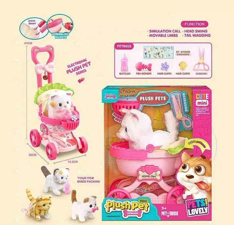 Улюбленець MC 1084 (18) "Кошеня", інтерактивна іграшка, візочок, кошеня нявчить, ходить, рухає хвостом, пискавка, аксесуари, в коробці