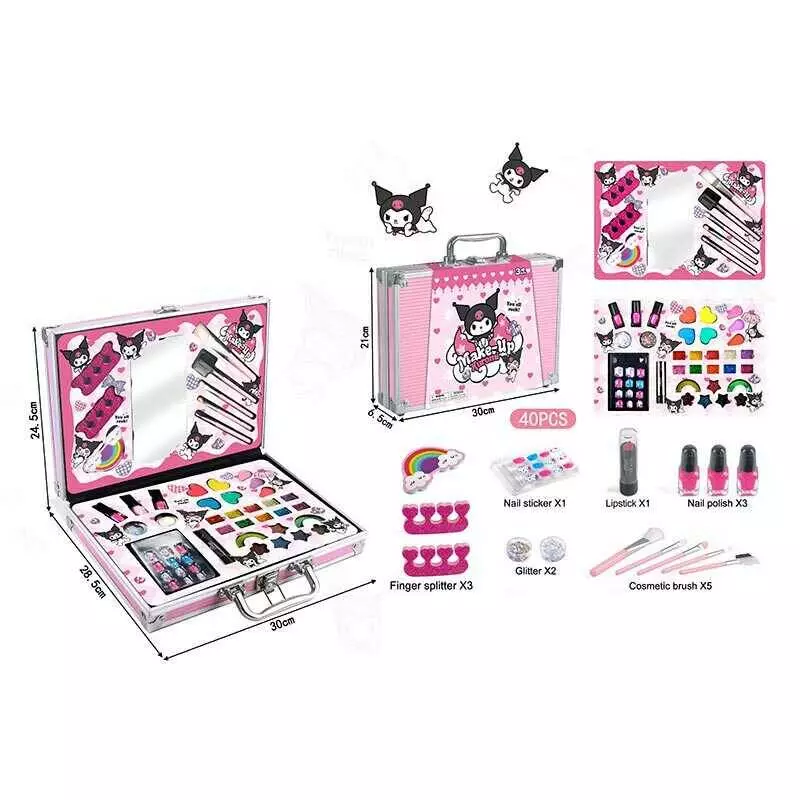Косметика FT 2076 A (36) 40 елементів, тіні, глітер, помада, лаки для нігтів, накладні нігті, пензлики для макіяжу, пилочка, розділювачі, у валізі