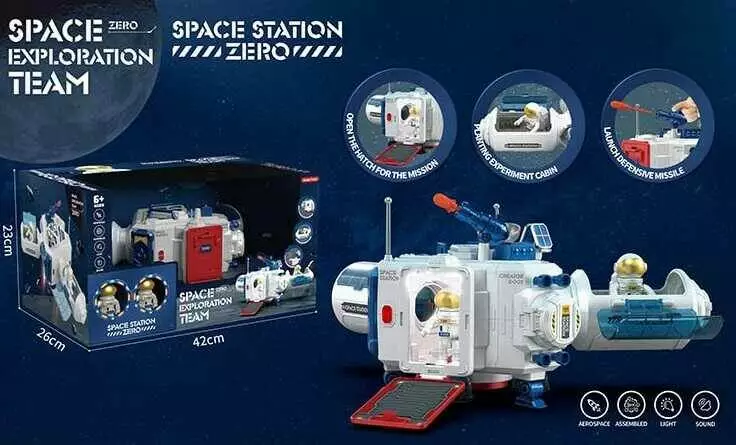 Космічний набір K 04 (12) "Космічна станція ZERO", світло, звук, 2 космонавти, у коробці