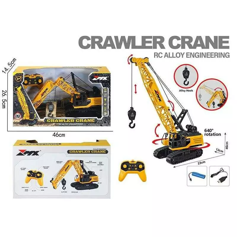 Кран на радіокеруванні Z 6830 A (12) металевий гак, автоматичний кран, гусеничний хід, пульт 2.4 G, вантаж, підсвічування, звук, акум. 3.7 V,в коробці