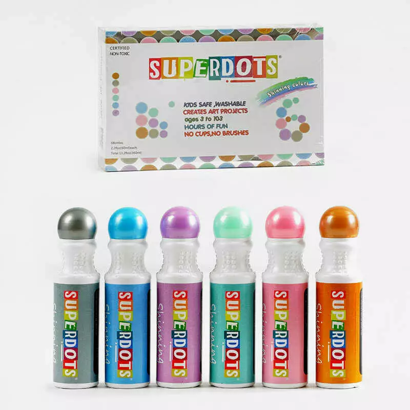Крапкові маркери C 35510 (22) 6 кольорів, пастельні, золотий, срібний, об`єм маркера 60 мл, в коробці