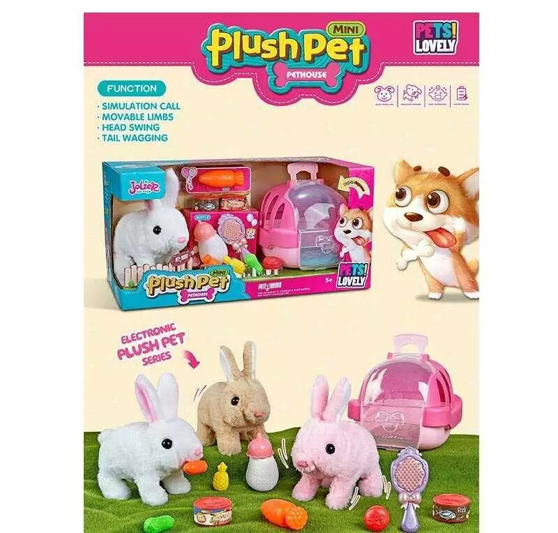 Улюбленець MC 1065 (16) "Кролик", ходить, звукові ефекти, рухає вушками, на батарейках, переноска, гребінець, пляшечка, продукти, в коробці