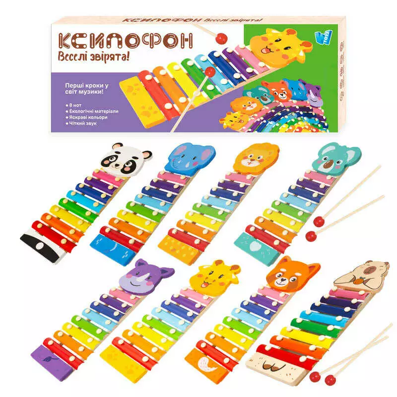 Ксилофон 35692 (36) "WToys", “Тварини”, дерев’яний, 8 нот, молоточки, в коробці, ВИДАЄТЬСЯ ТІЛЬКИ МІКС ВИДІВ
