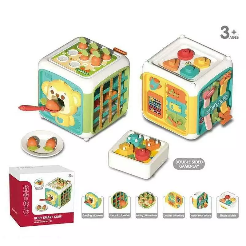 Куб логічний YL 562 (24) еластичні решітки, пальчикові ігри, гра з морквинами, сортер, рухомі елементи, в коробці