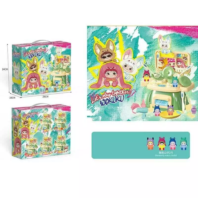 Кухня 228-77 A (48/2) висота 25 см, 2 гумові фігурки, набір аксесуарів: корона, фен, сумочка, посуд: каструля, сковорідка, тарілки, прибори, в коробці